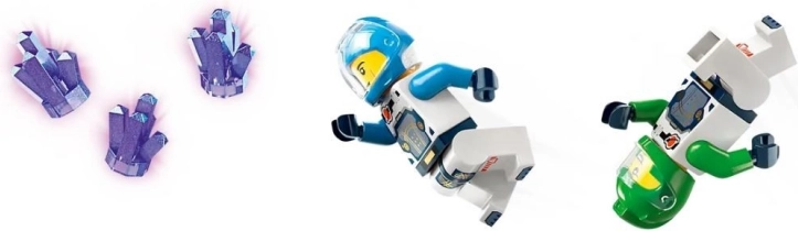 To astronaut-minifigurer og en rumvæsen-figur giver masser af historier. Der medfølger kontrolpost, cockpit og tilbehør til videnskabelige missioner.