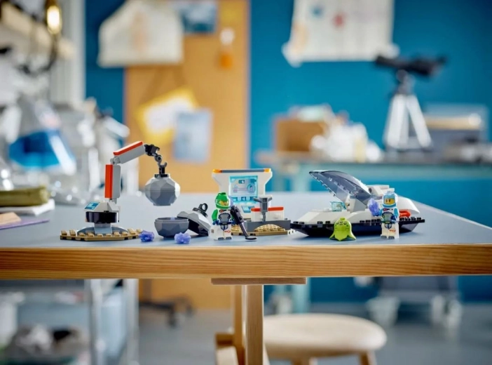Dette kreative sæt til børn fra 4 år kombinerer realistiske elementer med fantasi og åbner døren til ubegrænset rolleleg. Børn kan lande med rumskibet på asteroiden, løfte meteoritten med kranen og derefter teste de mystiske krystaller i det kosmiske laboratorium.