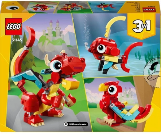LEGO Creator 3-i-1 Rød drage: byg en drage, en føniks eller en fisk. 149 dele, bevægelige dele, perfekt til leg og udstilling. Ideel gave til børn 6+.