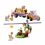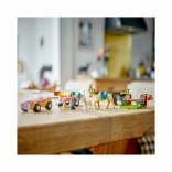 Byg et farverigt køretøj med aftagelig trailer og tag på tur i naturen. Børn lærer grundlæggende byggeteknik og kan lege realistiske scener med hestetransport.