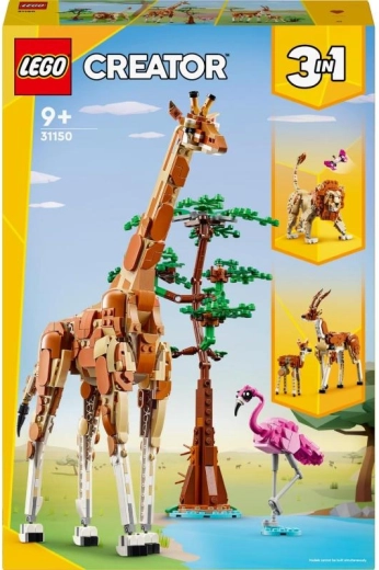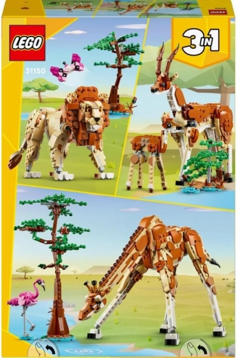 LEGO Creator 3-i-1 safaridyr giver masser af sjov og kreativitet. Af én æske kan du bygge en stolt giraf med en lang, justerbar hals, et lille træ og en sød flamingo. Når det er tid til forandring, kan modellen ombygges til to yndefulde gazeller – en mor med en unge – eller til en fornem løve med ledsagende elementer.