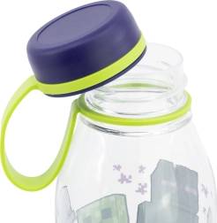 Hold styr på væskeindtaget i MINECRAFT-stil. Den robuste tritanflaske er let, men stærk og lukker tæt takket være silikone-lukningen. Den praktiske strop gør den nem at bære, og børn kan let åbne og lukke den.