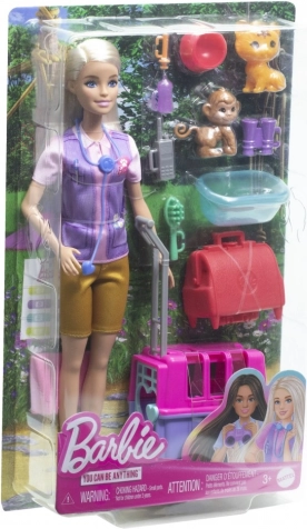 Udforsk verdenen af dyrepleje med Barbie som dyrlæge og et rigt sæt tilbehør til kreativ leg. I pakken finder du to søde patienter – en lille abe og en tigerunge, en transportkasse med åbningsbare døre og en praktisk lægetaske. Der medfølger også stetoskop, suttegren/flaske, en „sprøjte“ samt udstyr til pleje og udforskning af naturen. Den perfekte gave til små dyreelskere og kommende dyrlæger.