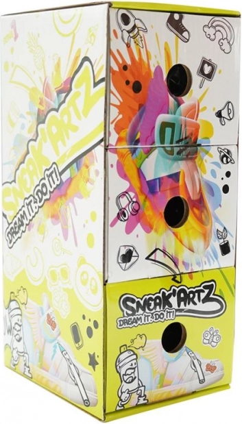 Forvandl et hverdagsaccessory til et unikt kunstværk. Sneak’Artz-sættet indeholder alt, hvad børn og kreative voksne behøver for at lave originale mini-sneakers – fra farvede tuscher og glitter til relief-klistermærker. Skab, kombiner og afprøv nye teknikker, inklusive blæseeffekten.