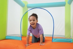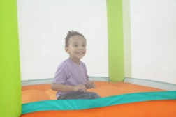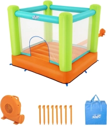 Bestway hoppeborgen bringer en hjemmeforlystelse direkte til din have. Robust PVC-materiale, dobbeltsyede sømme og net-sider sikrer sikker leg. Forældre vil sætte pris på de gennemsigtige vægge for konstant opsyn og den nemme centrale indgang, mens børnene vil elske den bløde og rummelige hoppeflade.