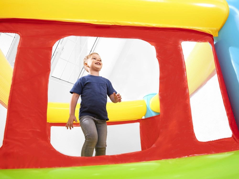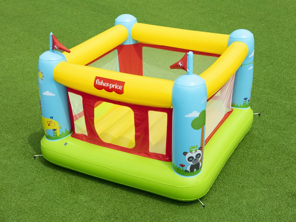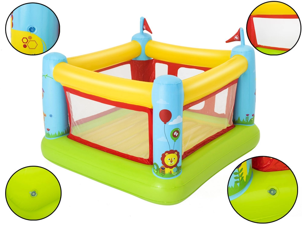 Den oppustelige borg Bestway FISHER‑PRICE skaber et sikkert og behageligt område til hop, leg og fri aktivitet. Gennemsigtige netpaneler sikrer god synlighed og luftgennemstrømning, mens bløde luftfyldte vægge og gulv dæmper landinger. De kompakte mål passer i de fleste børneværelser samt på terrasse eller i have.