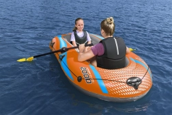 Den oppustelige bund giver ekstra komfort ved siddende, mens den fuldt oppustede konstruktion sikrer stabilitet og sikker sejlads på rolige vande.