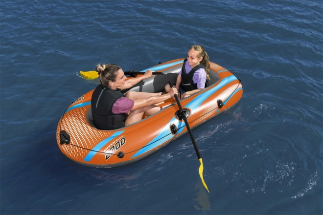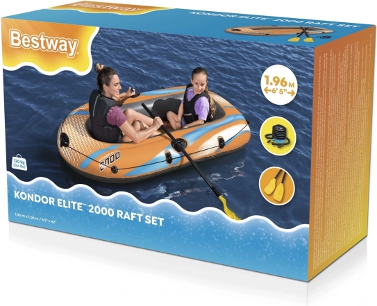 Sættet inkluderer båd, et par årer og en fodpumpe, hvilket gør det nemt at blive klar til vandet uden behov for ekstra udstyr.
