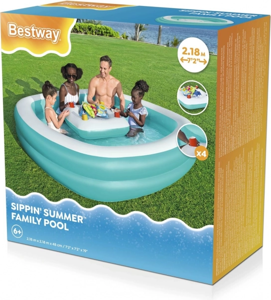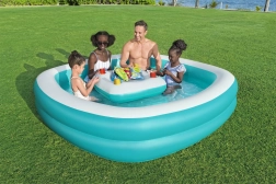 Det oppustelige bassin med dimensionerne 218x218x48 cm giver masser af plads til hele familiens sjov.