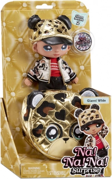 Den smukke Na! Na! Na! Surprise-dukke og taske udgør det ideelle makkerpar for enhver legesyg modeentusiast. Tasken er lavet af skinnende metallisk stof og andre materialer, som sikrer holdbarhed og lang levetid. Takket være den gennemsigtige emballage kan du præcis se, hvad du køber – fantastiske detaljer i dukkens outfit samt taskens stil og form med smukt farvede øjne og lange øjenvipper.