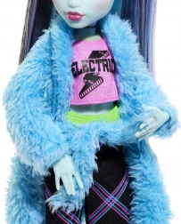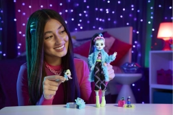 Oplev uhyggeligt sjove pyjamas-eventyr med dukken MONSTER HIGH Frankie Stein fra kollektionen Creepover Party. Den stilfulde dukke har en blød, lodden hættetrøje, en lyserød top og ternede leggings, komplet med asymmetriske grønne sko og et pandebånd med lyn. Et leddet korpus giver mulighed for posering, og sættet byder på tematiske tilbehør til pyjamasfest samt den trofaste kæledyrsven Watzie/Cotoš.