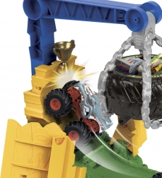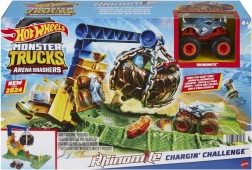 Tag trucken HOT WHEELS MONSTER TRUCKS RHINOMITE 1:64 gennem en række forhindringer og afslør trofæet i sættet Rhinomite Chargin’ Challenge. Pas på det svingende dæk, som spærrer din vej! Sættet byder på sanselige indtryk, hæsblæsende stuntaction og mulighed for forbindelse med andre Arena Smashers-sæt for endnu større eventyr. I pakken finder du 1 Rhinomite-truck 1:64 og 2 “krøllede” biler.