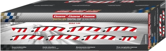 Praktisk sæt indvendige kantstykker til banket kurve 3/30° udvider din CARRERA racerbane og sikrer glattere og mere sikker passage. Indeholder 6 stk. kantstykker, kompatible med systemerne Evolution, Digital 132 og Digital 124 og med radius R3.