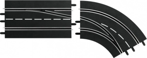 Denne højre, indvendige overhalingsdel udvider dine racemuligheder og øger spændingen på banen. Takket være den enkle betjening med knappen på controlleren (30340) skifter du sporskiftet og går over i nabobanen præcis, når du har brug for det. En fremragende løsning, hvis du ligger bag en langsommere bil og vil komme foran igen ved hjælp af efterfølgende krydsning.