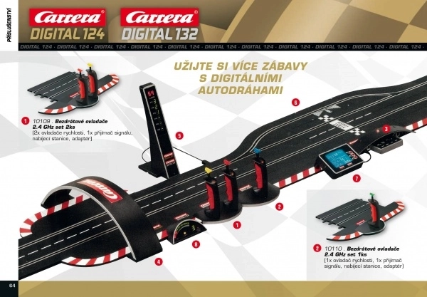 Nyd bevægelsesfriheden med en trådløs controller 2,4 GHz til racerbaner CARRERA DIGITAL 132/124. Leverer stabilt signal uden interferens, rækkevidde op til 15 m og op til 8 timers batteritid på én opladning. Kompatibel med både Black Box og Control Unit for maksimal komfort og jævn kørsel.