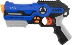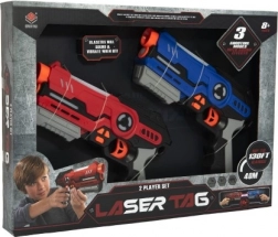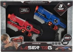 Nyd actionfyldt sjov hjemme og ude med et sæt af to laserpistoler til to spillere. Det tilbyder lys- og lydeffekter, træfferregistrering op til 40 m og livsindikator via 3 LED. Strømforsyning via 3× AA-batterier pr. pistol (medfølger ikke). Velegnet fra 8 år.