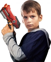 I pakken er der to laserpistoler – udfordr en ven og mål jeres styrker. Træfferregistrering op til 40 m sikrer et adrenalinfyldt spil både inde og ude.