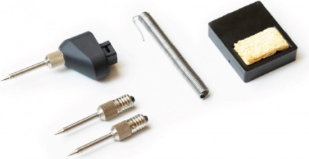 - Komplet udstyr i pakken inklusive tin, 3 loddespidser og svamp til rengøring.