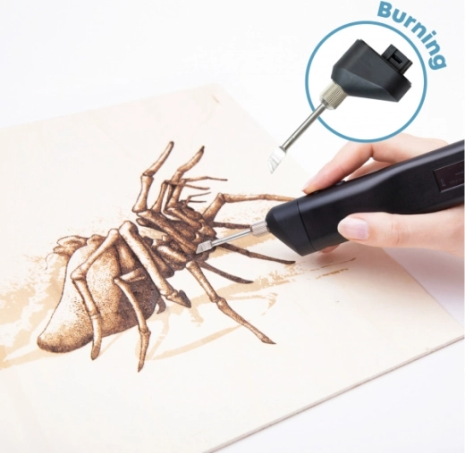 Velegnet til dekoration af trægenstande, lædertilbehør eller til personliggørelse af gaver. Stabil ydeevne og kompatibilitet med Multipro-systemet gør det muligt hurtigt at skifte mellem 3D-tegning, skæring, lodning og brænding.