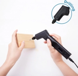 Boretilbehøret til 3D-pen MultiPro forvandler din enhed til et kompakt værkstedsredskab til kreative og hobbyopgaver. Det muliggør præcist arbejde i materialer som træ, plast, aluminium og tyndt glas og er velegnet til fine detaljer og småreparationer.