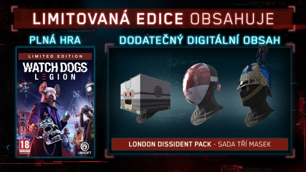 Træd ind i revolutionen i Londons gader med PS4 Watch Dogs Legion Limited Edition. Byg din modstandsbevægelse, rekruttér hvem som helst fra gaden, og brug hacking som dit våben. Udforsk Londons åbne verden, styr kampdroner og edderkoppesrobotter, fuldfør online co-op-missioner, og kæmp mod systemet med stil. Den begrænsede udgave indeholder eksklusivt kosmetisk indhold for en endnu mere markant oplevelse.