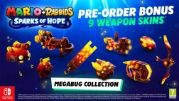 Bemærk: Noget indhold kræver internetforbindelse og en Nintendo-konto. Indhold fra Season Pass bliver tilgængeligt efter udgivelse. Tilbud kan ændres. Forudbestillingsbonus: Megabug-pakke med 9 våbenskins til alle medlemmer af holdet.