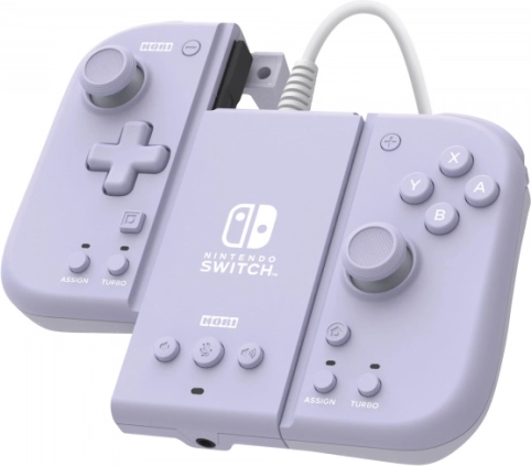 Sættet HORI Split Pad Pro + adapter er ideelt til spillere, der ønsker større komfort og præcision både hjemme og på farten. Controlleren kan nemt deles og tilsluttes i stedet for Joy‑Cons til handheld‑spil, eller bruges med adapteren som en kablet controller ved tv'et. Det lavendelfarvede design giver din konsol stil.