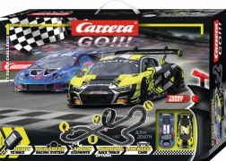Oplev maksimal hjemmebaneræs med bilbanen Carrera GO på 6,3 m i skala 1:43. Sættet indeholder detaljerede biler Audi R8 LMS GT3 og Lamborghini Huracán GT3, loop, kryds, lodret væg og omgangstæller. Takket være Turbo-controllere, magneter og dobbelte børster er kørslen hurtig og stabil, samlingen er nem, og sjov for børn fra 6 år er garanteret.