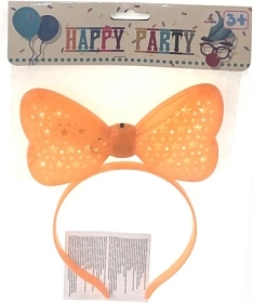 Mød op til festen med en hårbøjle, ingen kan overse. Den store sløjfe med stjerner og måner giver et legende udtryk, og når lyset tændes, skaber den en effektfuld lysaccent. Hårbøjlen er lavet af holdbart, men let plastik – nem at tage på og behagelig hele aftenen.