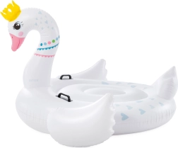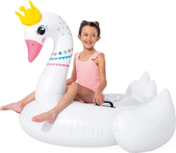 Oppustelig svane i størrelsen 142×137×99 cm. Der er placeret 2 håndtag på siderne. 2 luftkamre. Reparationslap medfølger. Maksimal bæreevne er 40 kg.