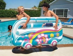 Denne farverige oppustelige luftmadras i varevognsdesign kombinerer sjov og komfort. Den er designet til afslappende flyd på vandet, uanset om det er i hjemmebassinet eller på ferien. Takket være det robuste materiale og den gennemtænkte form er den let at styre og holder stabiliteten godt.