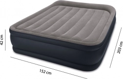 Den integrerede elektriske pumpe muliggør bekvem brug uden ekstra tilbehør – på få minutter har du en fuld dobbeltmadras klar, og efter tømning pakker du den hurtigt sammen i transportposen. Den forhøjede konstruktion på 42 cm gør det lettere at lægge sig og rejse sig og giver komfort som en klassisk seng.