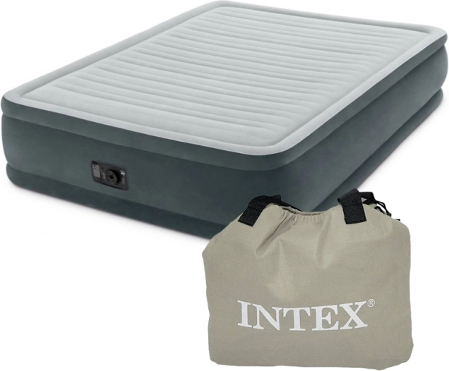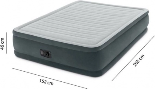 Den oppustelige madras Intex (203x152x46 cm) er en ideel løsning til komfortabel søvn for to personer derhjemme eller på farten. Takket være den indbyggede elektriske pumpe kan madrassen hurtigt pumpes op på kun 3 minutter og tømmes nemt på 1 minut.