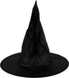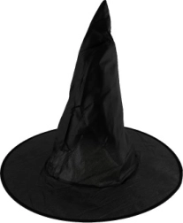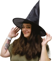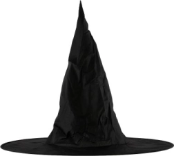 Den markante spids og brede skygge giver din udklædning et autentisk præg. Den sorte tekstilhat passer perfekt til både hekse- og troldmandskostumer.