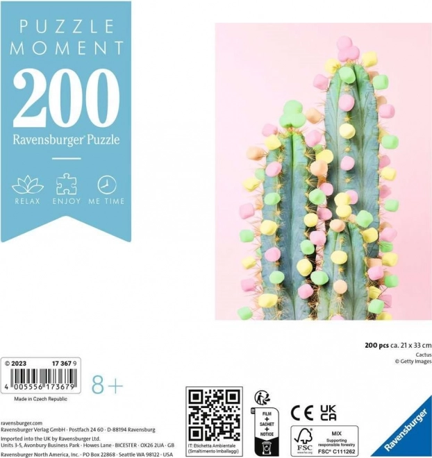 Forkæl dig selv med et øjebliks ro med RAVENSBURGER-puslespil fra kollektionen Puzzle Moment. Kaktusmotiv og 200 brikker giver hurtig, afslappende lægning selv efter en krævende dag. Høj kvalitet og præcise brikker sikrer en behagelig oplevelse for både begyndere og øvede.