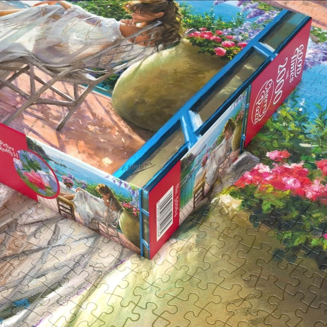 Oplev charmen ved et roligt øjeblik ved havet. CHERRY PAZZI-puslespillet præsenterer en fin, kunstnerisk scene med en kvinde, der slapper af på en terrasse med udsigt over havet. Med 2000 omhyggeligt udskårne brikker er det ideelt til elskere af mere krævende udfordringer og smukke motiver til indretningen.