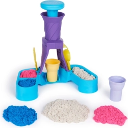 Skab og nyd sjov leg med Kinetisk Sand issættet, der giver børn mulighed for at lave 'is' af speciallavet sand i glade farver.