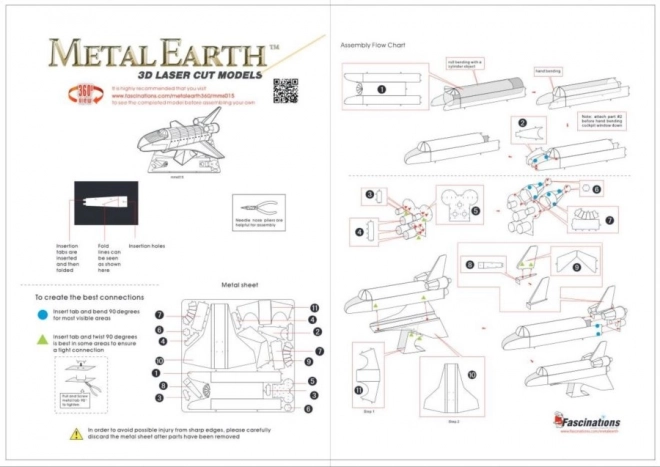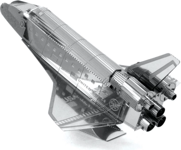 METAL EARTH Rumfærgen Atlantis er en præcis 3D metalmodel skåret med laser. Fra en kvadratisk stålplade på 11 × 11 cm samler du en troværdig replika af NASAs legendariske orbiter med fin gravering, dyser og påskrifterne “United States” og “USA”. Den samlede model er ideel som samlerobjekt og som en original gave.