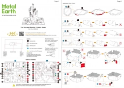 Tag de enkelte dele ud af metalpladerne; brug om nødvendigt små skævbider-tænger (ikke inkluderet). Delene forbindes ved hjælp af låse bestående af en tap og et hul. Bøj tappen med små, tynde tænger (ikke inkluderet), og forbind gradvist alle låse, indtil der opstår et meget realistisk mesterværk!