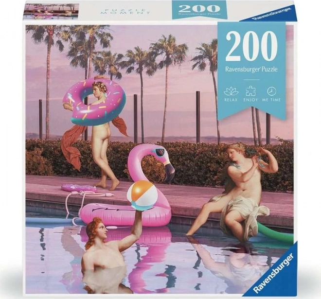 Tag en pause fra hverdagens travlhed, og dyk ned i en verden af fokus og velvære. Serien Puzzle Moment er designet til korte, behagelige puslesessions, hvor du får renset tankerne og genoplader energien. Motivets poolparty bringer friske farver og en moderne stil, der også gør sig flot indrammet.