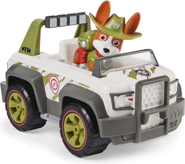 Paw Patrol rykker ud i deres redningskøretøjer! Slut dig til Tracker på actionfyldte missioner med hans junglekøretøj! Når der opstår problemer, sæt Tracker (inklusive figur) i førersædet og skynd dig af sted med rigtigt fungerende hjul! Med autentiske detaljer og realistiske funktioner bringer den elskede junglehvalp fra Paw Patrol og hans terrængående køretøj den fantastiske Paw Patrol til live. Tracker og hans køretøj er fremstillet med omtanke for miljøet og består af mindst 67 % genanvendt plast! Slå dig sammen med de andre hvalpe og deres redningskøretøjer (sælges hver for sig) og hjælp med at redde dagen i Adventure Bay! For endnu sjovere og mere spændende missioner inspireret af Paw Patrol-serien kan du samle alle Paw Patrol-legetøj fra filmen, som for eksempel den fantastiske hangarskibs-base, samt alle specialudgaver af legetøj, figurer og legesæt fra Paw Patrol til piger og drenge: Mighty Pups, Aqua Pups og store køretøjer (hver sælges separat). Nyd endeløse pote-tastiske eventyr med din yndlingshvalpehelt i deres karakteristiske køretøj!