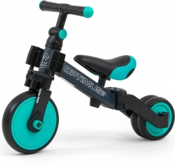 Børne løbecykel 3i1 Optimus Mint er det ideelle valg til dit barns første køretøj. Med tre hjul giver den stabilitet og sikkerhed, som letter indlæringen af nye færdigheder. Når barnet har fået selvtillid, kan løbecyklen nemt forvandles til en klassisk børnecykel ved at tilføje pedaler, eller den kan bruges som en traditionel løbecykel.