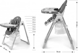 Højstolen Bueno er udstyret med blød polstring i økovenligt læder, som er let at holde ren. Den har fempunkts sikkerhedsseler for maksimal sikkerhed for barnet samt en barriere mellem benene, der forhindrer at barnet glider ned. Stolen tilbyder mange justeringsmuligheder: