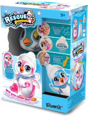 Denne interaktive blå pingvin giver børn en unik oplevelse af omsorg og leg. Med den magiske klud kan du rengøre den og derved låse op for lys- og lydfunktioner. Dens blinkende hjerte skifter farve efter følelser – når den er glad, træt, frossen eller sulten, viser den det tydeligt.