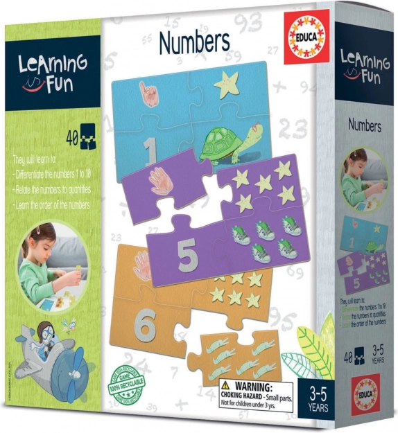 Opdag en legende vej til matematik med serien EDUCA Learning is Fun. Dette sæt introducerer børn til tallene 1–10, lærer dem første regning og forbinder tal, antal billeder og fingre. Hvert tal har 4 puslebrikker, som udvikler finmotorik, logisk tænkning og tålmodighed. Produktet er desuden 100% genanvendeligt.