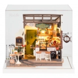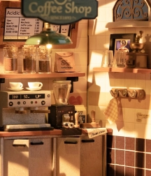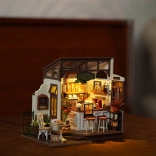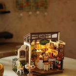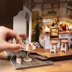 Samlingen er intuitiv og sjov – de enkelte dele passer præcist, så både begyndere og erfarne modelbyggere kan nyde processen. Cirka 6 timers kreativt arbejde giver en behagelig pause fra hverdagen, og resultatet er en stilfuld mini-café med belysning, der lyser op på hylden, skrivebordet eller i vitrinen.