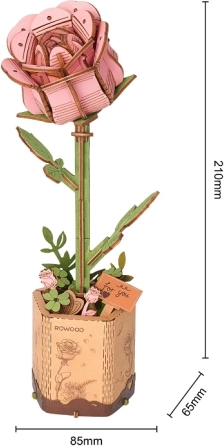 Denne elegante trærose er en fantastisk gave og et stilfuldt interiørtilbehør. Takket være den smarte udformning af delene samles modellen let og virker samtidig meget realistisk. Med lav sværhedsgrad og en byggetid på omkring 30 minutter vil projektet begejstre begyndere, familier og kreative entusiaster.