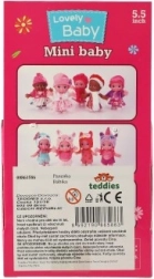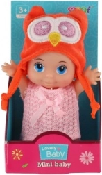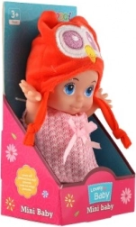 Den søde Mini Baby-dukke på 15 cm med solid plastkrop og en hue med dyremotiv vil glæde ethvert barn. Takket være bevægelige arme i skuldrene er den ideel til rolleleg, og den udvikler finmotorik og fantasi. Leveres i gaveæske, velegnet til børn fra 3 år.