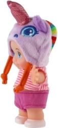 Denne lille dukke med store øjne og et glad udtryk er en fantastisk ledsager til hverdagsleg. Den solide plastkrop holder formen godt, og de bevægelige arme i skuldrene gør det nemt at posere og klæde om. Den farverige dyrehue giver dukken en unik stil og inspirerer til historiefortælling.