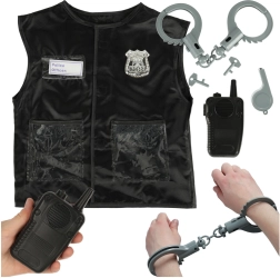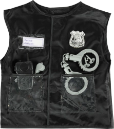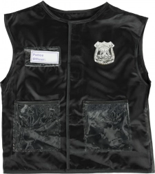 Vesten har gennemsigtige lommer, et sølvmærke og et 'Police Officer' mærkat, der giver børn mulighed for at føle sig som en ægte politibetjent.